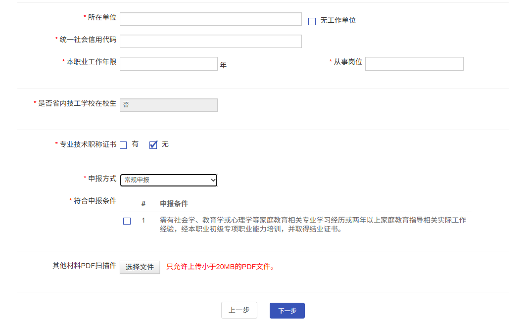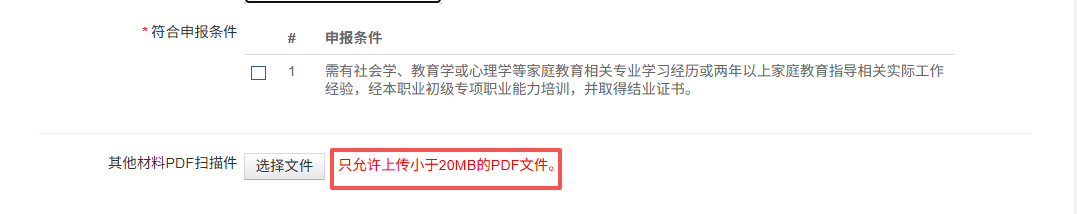 2.*【其他材料PDF扫描件】(该条件为必填项,请考生务必上传证明材料,不然视为不满足申报条件,将直接退回报名申请)