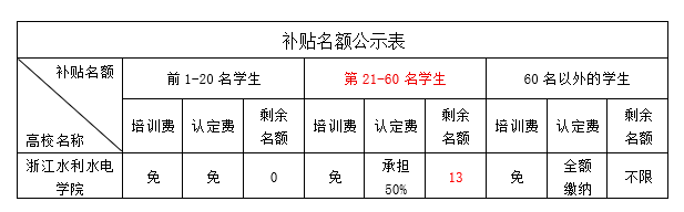 3.新增补贴名额后浙江水利水电学院活动情况如下: