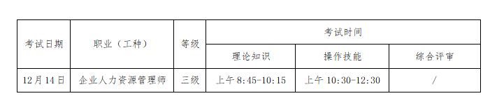 考试时间为2025年12月14日(周日),请考生根据申报的职业(等级)参加考试,具体安排如下: