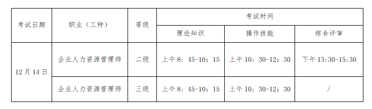 考试时间为2025年12月14日(周日),请考生根据申报的职业(等级)参加考试,具体安排如下: