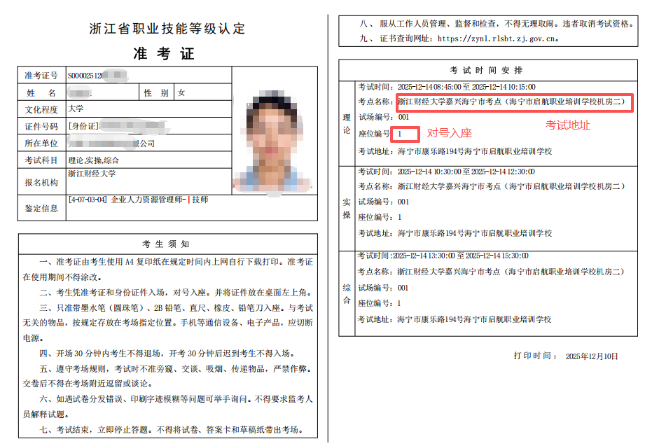 我校定于12月14日(周日)举行海宁考点职业技能等级认定考试,现就相关考试安排通知如下: