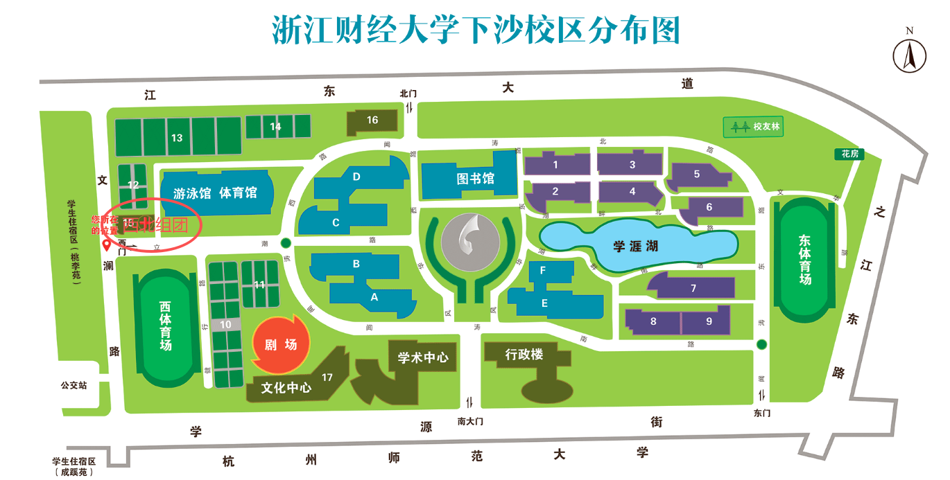 考试地点位于浙江财经大学下沙校区(杭州高教园区学源街18号)科技实验楼E楼(唯实楼)