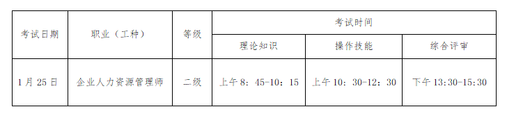 考试时间为2026年1月25日(周日),请考生根据申报的职业(等级)参加考试,具体安排如下: