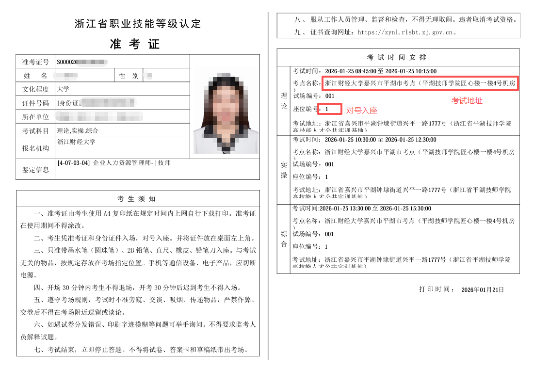 我校定于1月25日(周日)举行平湖考点职业技能等级认定考试,现就相关考试安排通知如下: