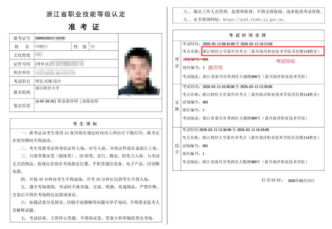 我校定于3月15日(周日)举行嘉兴考点职业技能等级认定考试,现就相关考试安排通知如下: