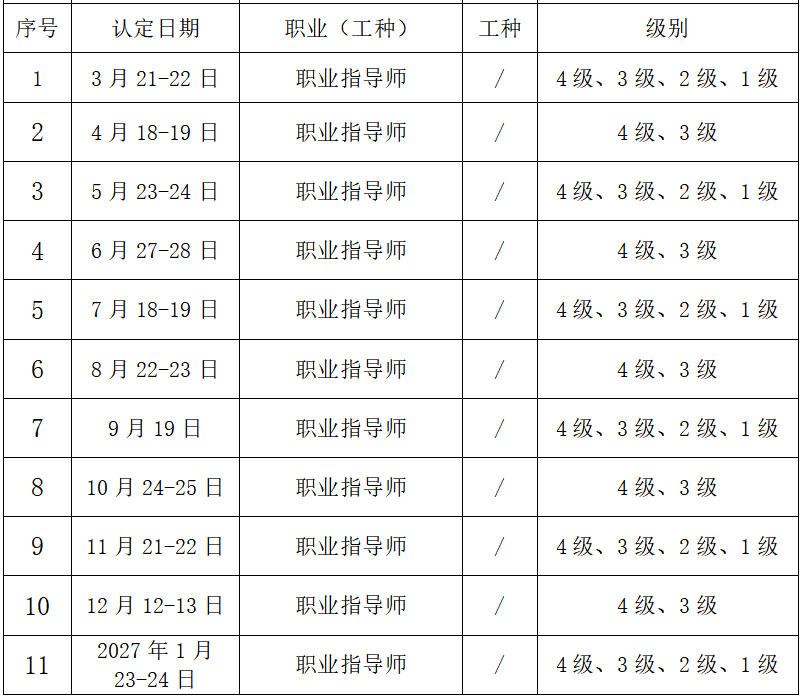2.如该批次相应等级认定申请人数不足30人时,认定机构可推迟或取消该等级认定计划。